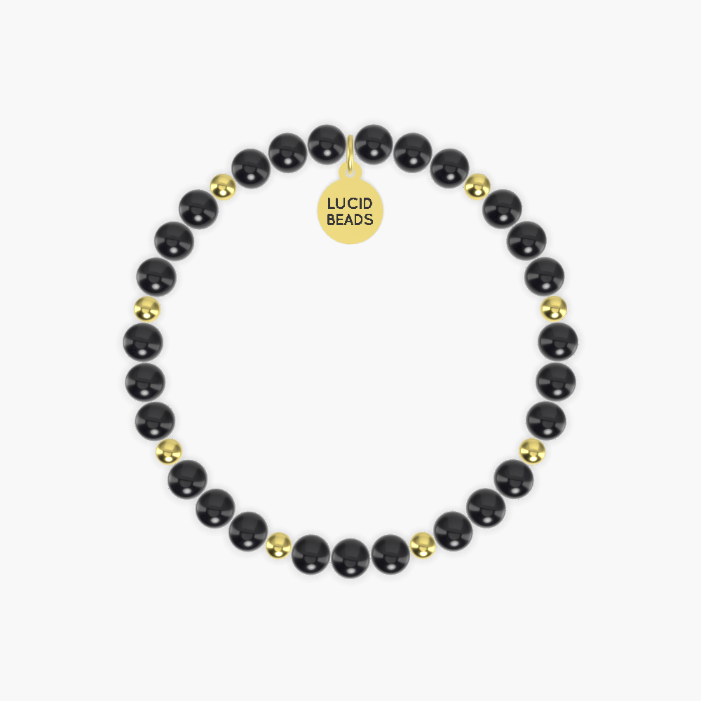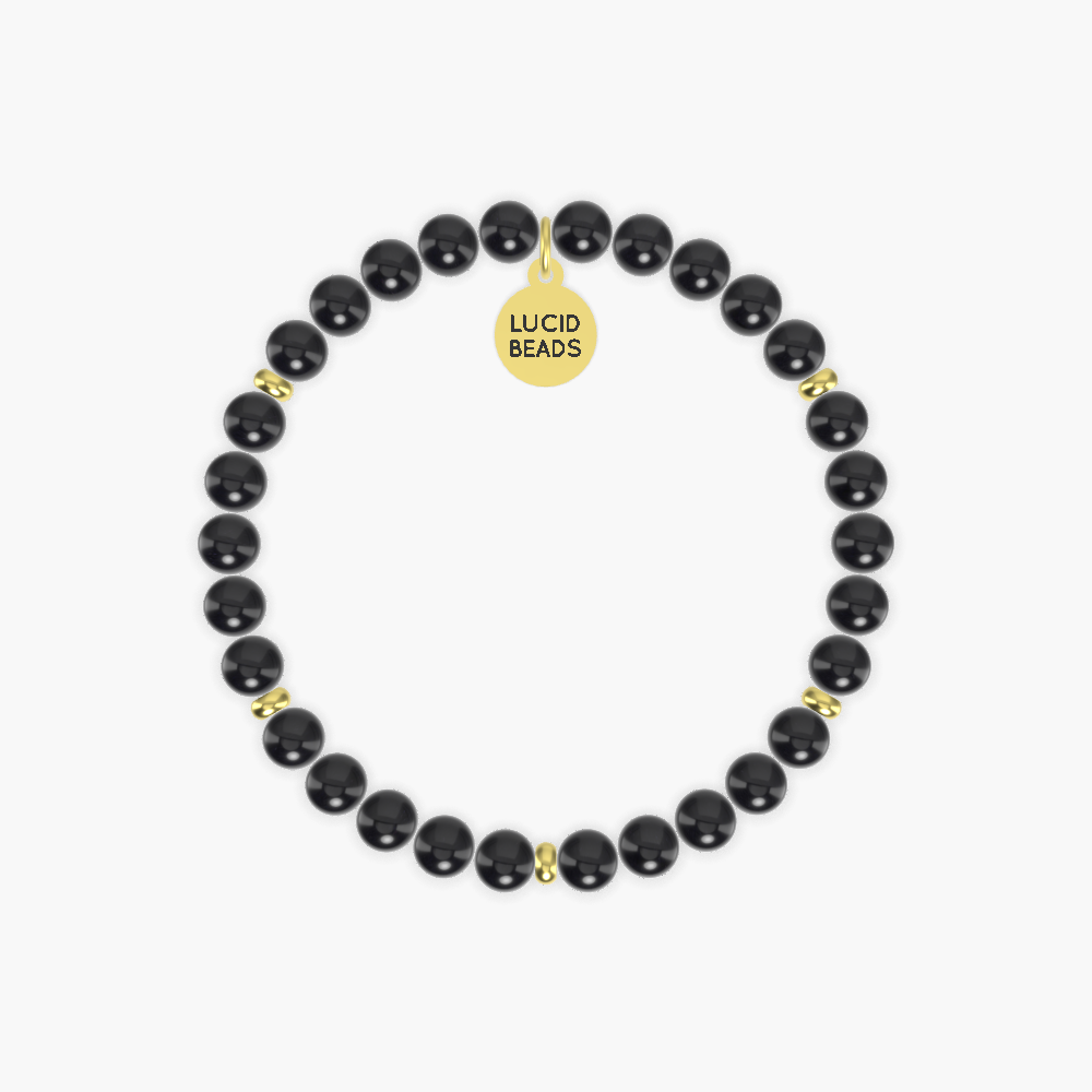 This is a bracelet created using Black Obsidian and Clear Quartz beads. Black Obsidian, with its glossy, jet-black appearance, is recognized for its protective qualities. This gemstone symbolizes strength and clarity, often associated with shielding against negativity and promoting emotional cleansing. Its smooth, reflective surface is thought to encourage introspection and truth, making it a powerful stone for personal discovery. Clear Quartz is renowned for its crystal-clear transparency and versatility, making it a staple in jewelry making. It is celebrated for its durability and the ability to enhance the properties of other stones. Symbolically, it stands for clarity, focus, and amplification of energy, offering a sleek, pure aesthetic.